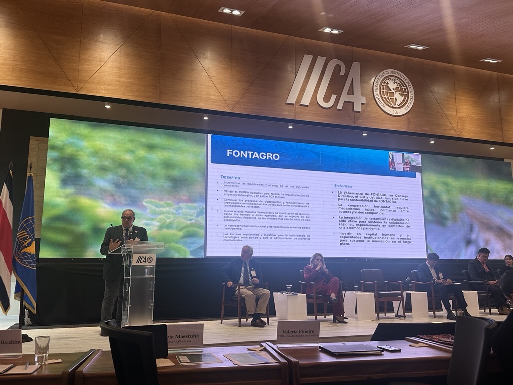 As part of the Second Regional Dialogue on Science, Technology, and Innovation in Agri-Food Systems of Latin America and the Caribbean, led by the Inter-American Institute for Cooperation on Agriculture (IICA) and held on March 26–27 in San José, Costa Rica, FONTAGRO actively participated in the formulation of a strategic roadmap for agriculture and agri-food systems (AFS) in the region. FONTAGRO was represented by its President Nicolás Bronzovich, Vice President Jorge Ganoza, and Executive Secretary Eugenia Saini.