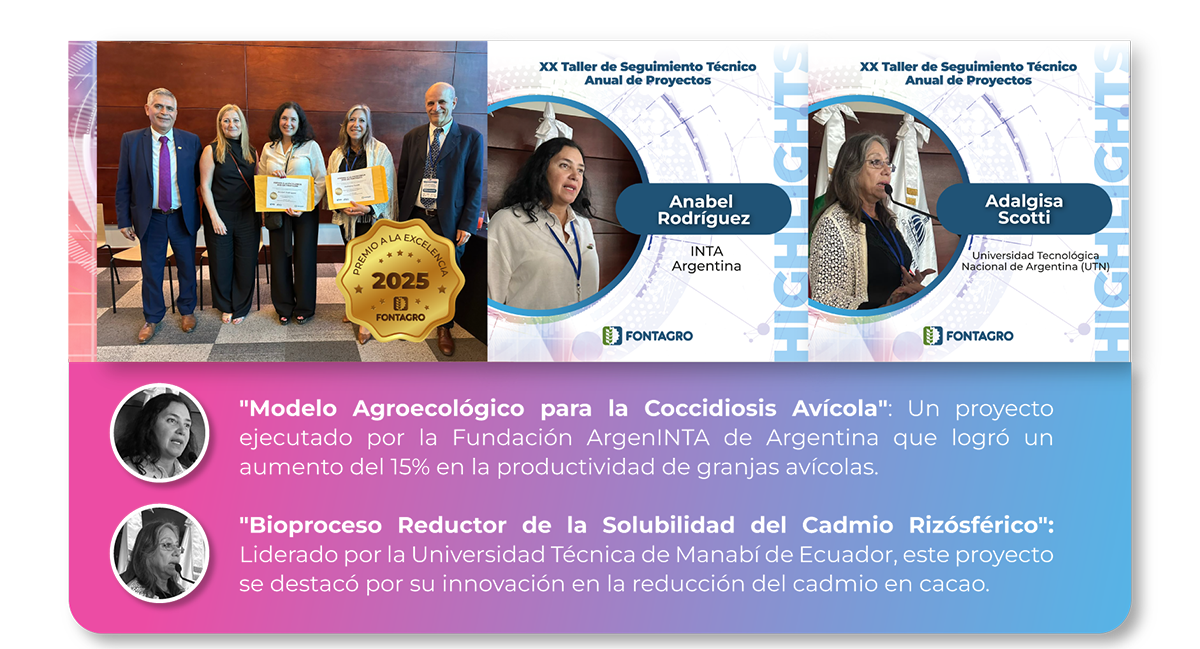 Durante el taller, se otorgaron dos prestigiosos premios a la excelencia FONTAGRO a proyectos innovadores que han marcado la diferencia en el sector: