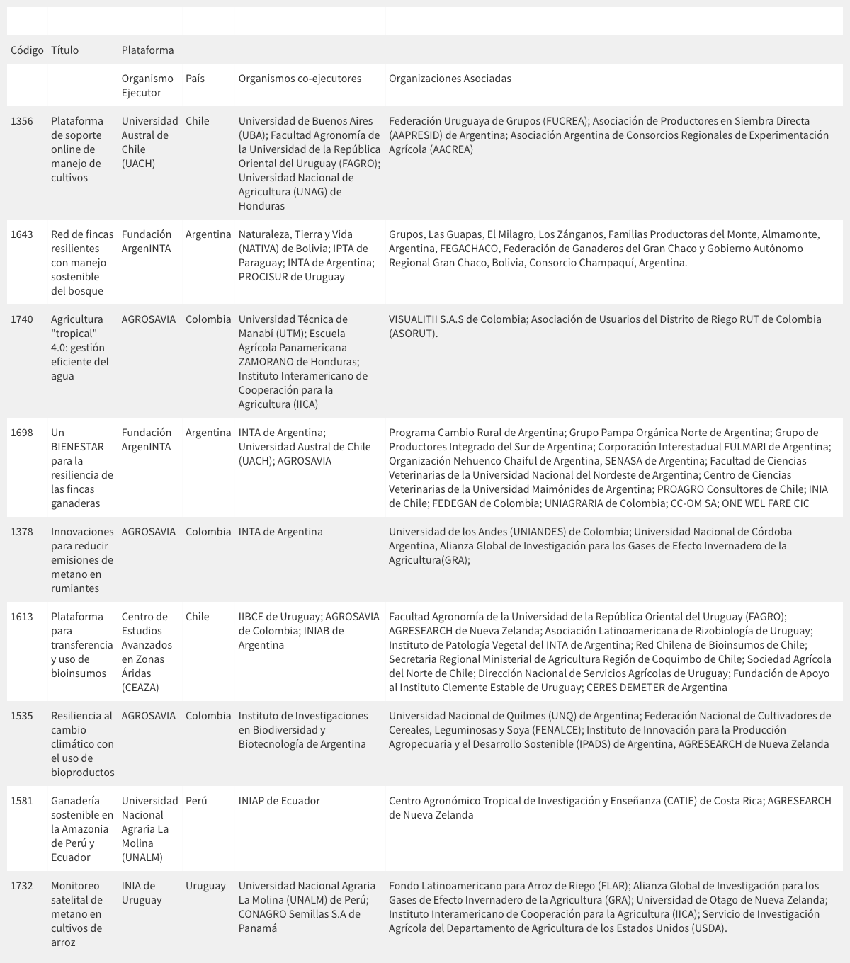 Además de FONTAGRO, otros donantes mostraron interés en apoyar las iniciativas, para lo cual se estará comunicando la asignación de financiamiento en forma individual en las próximas semanas.