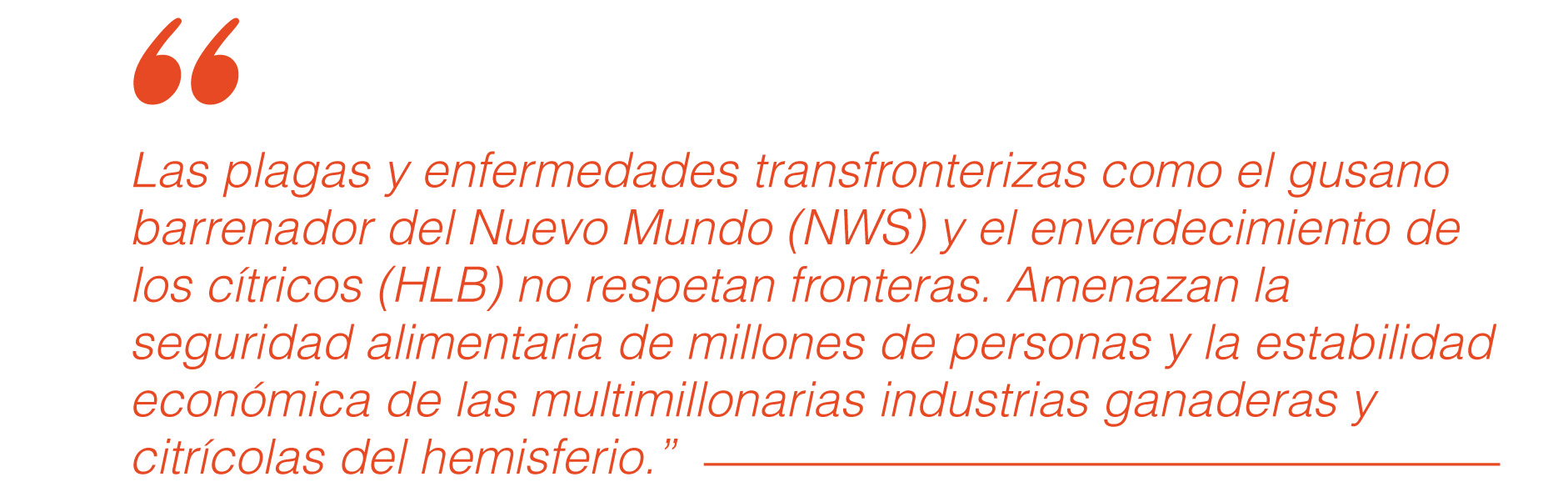 Las plagas y enfermedades transfronterizas, como el Gusano Barrenador del Nuevo Mundo (NWS) y el enverdecimiento de los cítricos (HLB), no reconocen fronteras. Representan una amenaza directa para la seguridad alimentaria de millones de personas y para la estabilidad económica de las industrias ganadera y citrícola, valoradas en miles de millones de dólares en la región. En este contexto, FONTAGRO, el Instituto de Ciencias Alimentarias y Agrícolas de la Universidad de Florida (UF/IFAS) y el IICA unieron esfuerzos con universidades, institutos nacionales de investigación agropecuaria, el sector privado y organizaciones de productores de todo el hemisferio occidental, con el objetivo de fortalecer respuestas científicas coordinadas frente a estos desafíos.